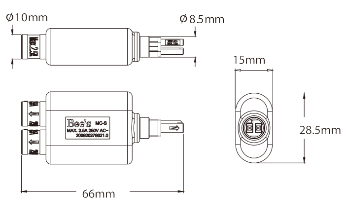 配置(Configuration):輸入Bees公插頭,輸出Bees母插接口。