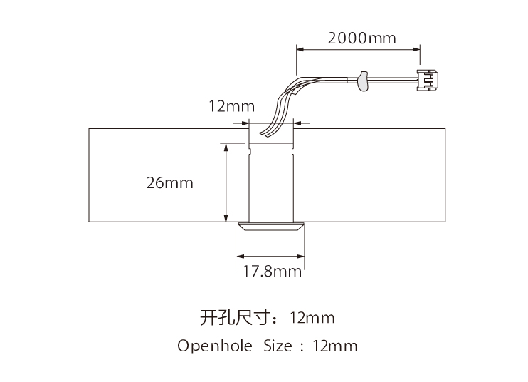 配置(Configuration):嵌入式紅外手掃開(kāi)關(guān)(不可調光),出線(xiàn)為2米24AWG黑色軟排,帶三線(xiàn)Mini公插頭(過(guò)線(xiàn)開(kāi)孔尺寸:8mm)。 型號(Model):BSS-HIRMA 顏色(Color):黑/白/銀灰 輸入(Input):DC12V
