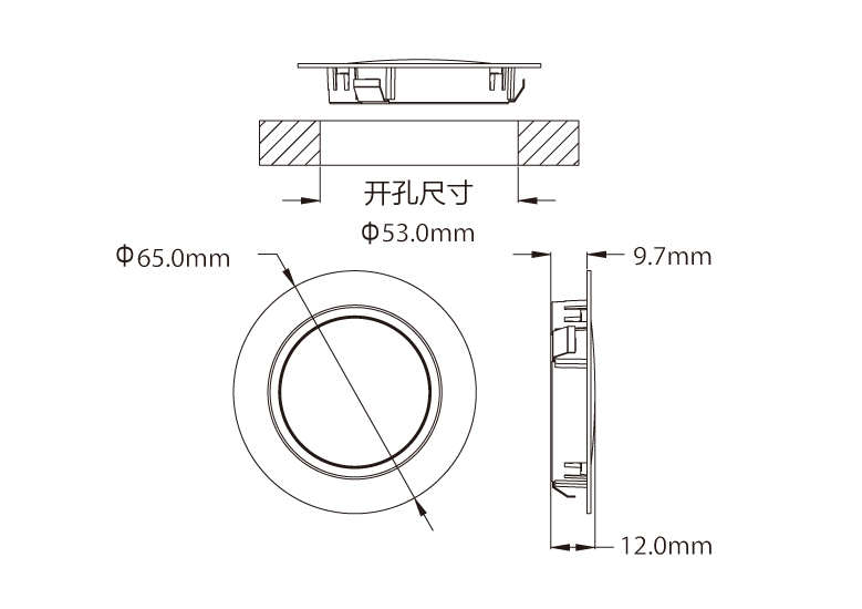 配置(Configuration):嵌入式安裝,燈具出線(xiàn)為2米22AWG軟排線(xiàn),帶Mini公插頭。